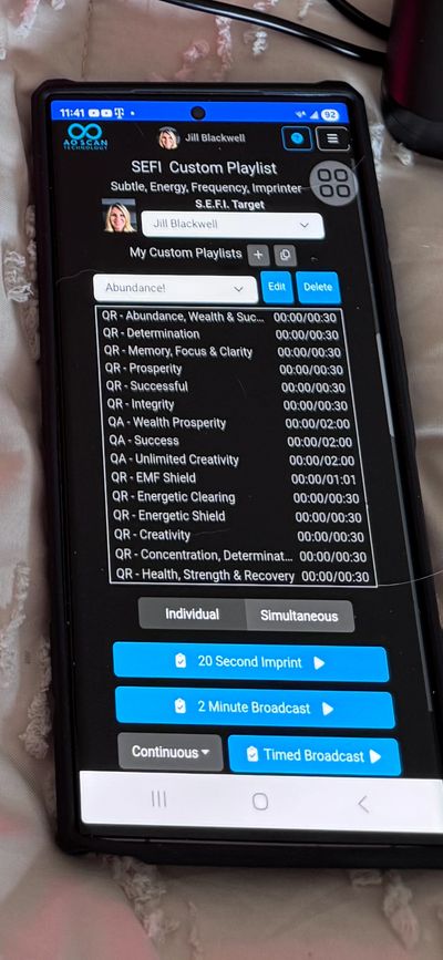 After the imbalances have been located, the AO Scan returns those frequencies back to your body, specific to the problem areas, but 180 degrees out of phase. With repetition, your body begins to correct itself at the deep level of its subtle energy. You can actually see the numbers change in real-time! In addition to the scanning and optimizing, we can create a playlist of 15 targeted healing frequencies to be sent to you via Subtle Energy Frequencies (SEFI) see picture to the left. Great progress has been made with those sent frequencies alone! The scanning, optimizing, and SEFI work in person and remotely! If you don't know which playlist or frequency your body needs, no problem, the technology will tell you! It also can tell you which foods would be of most benefit each day and which to avoid! This alone has been so helpful for me! The technology has "supplements" recorded in it and even when away from home and your supplements, you can receive the frequency of them - which is just like taking them (but cheaper :).